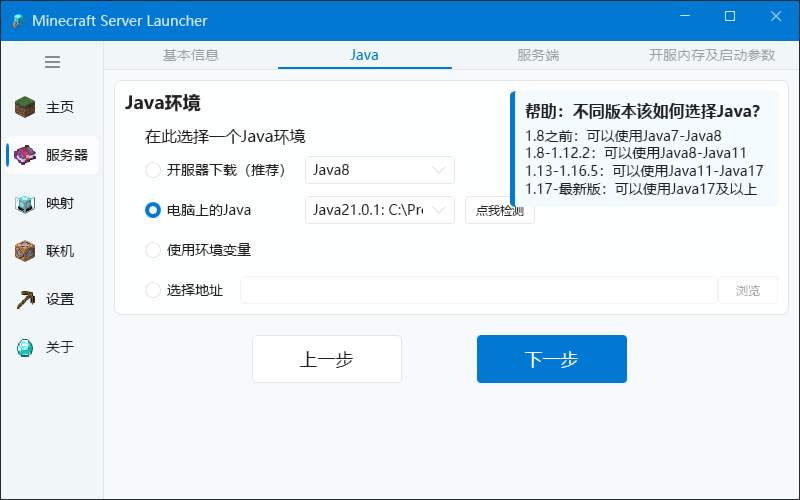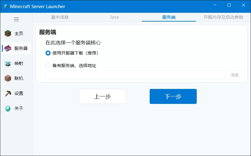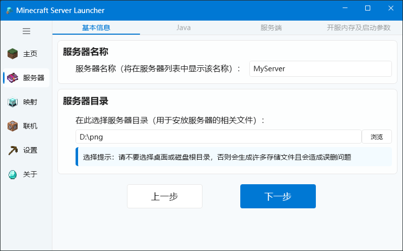 如果你已有服务端,请将服务器目录设置为你的服务端目录